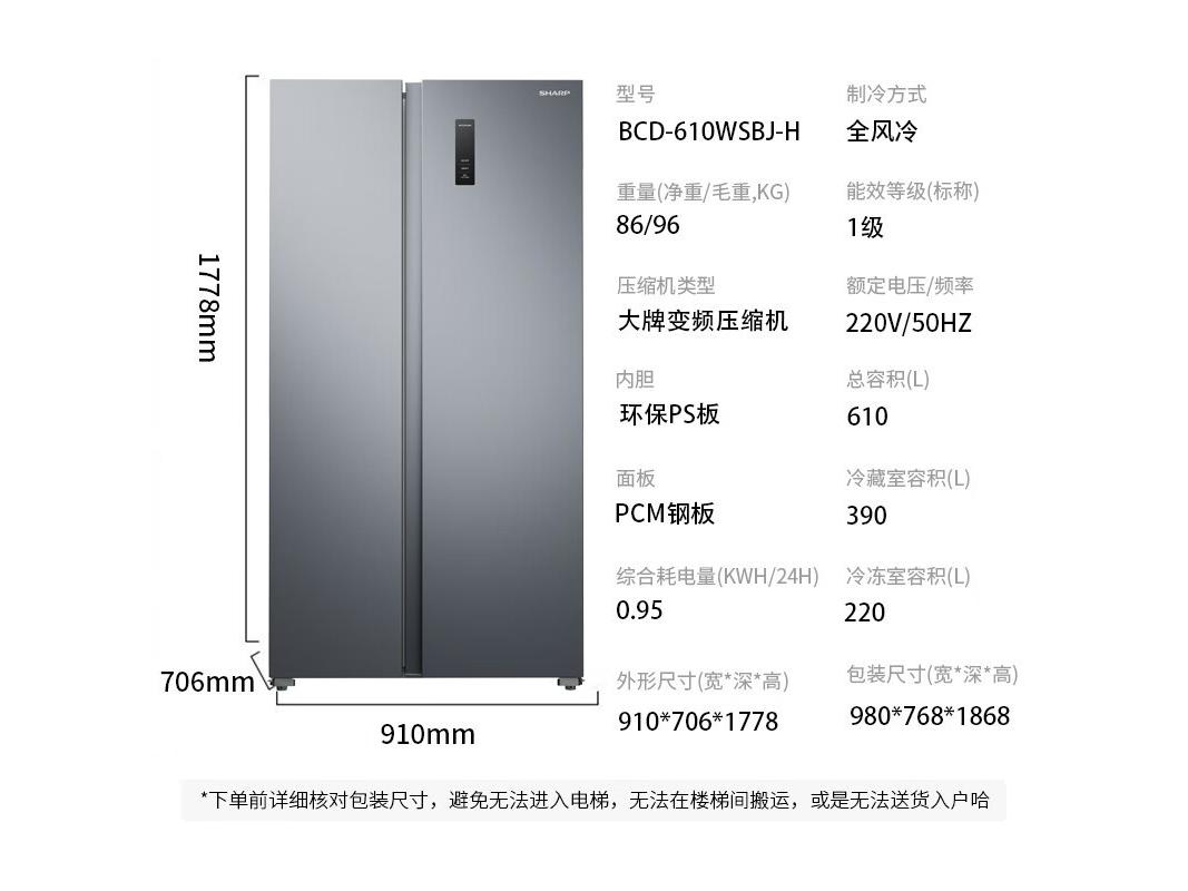 夏普 BCD-610WSBJ-H 冰箱