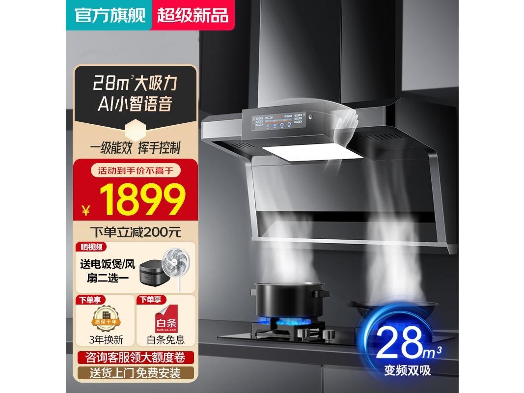 云米星球 E66 【旗舰爆歀】29立方爆吸+一键清洗+智能体感 抽油烟机